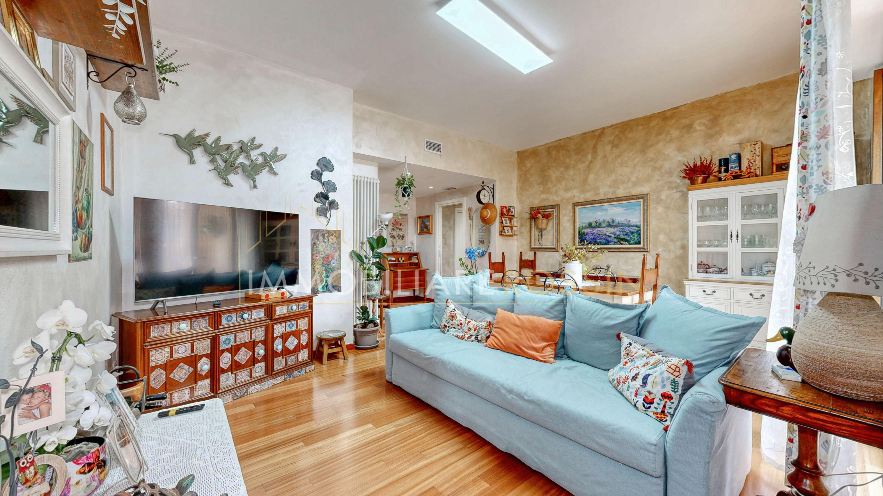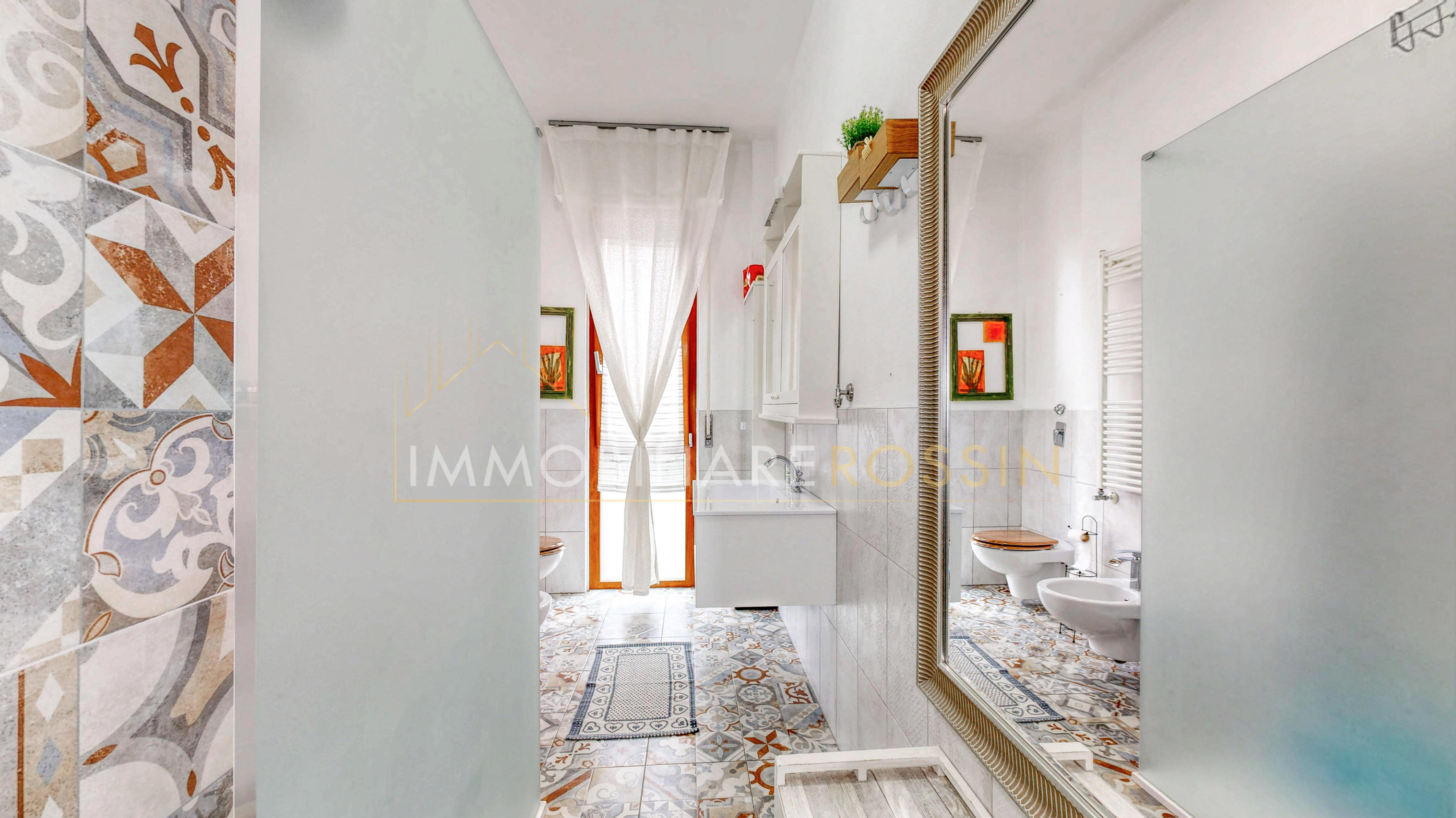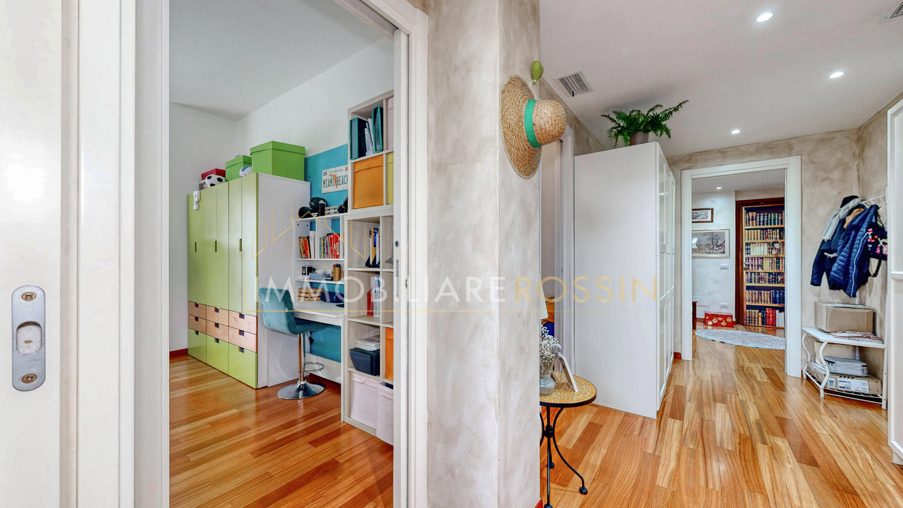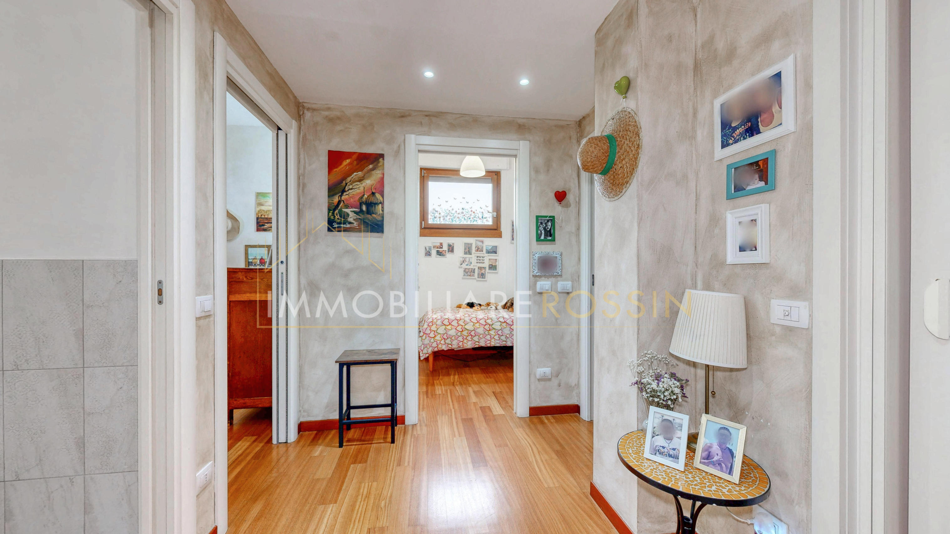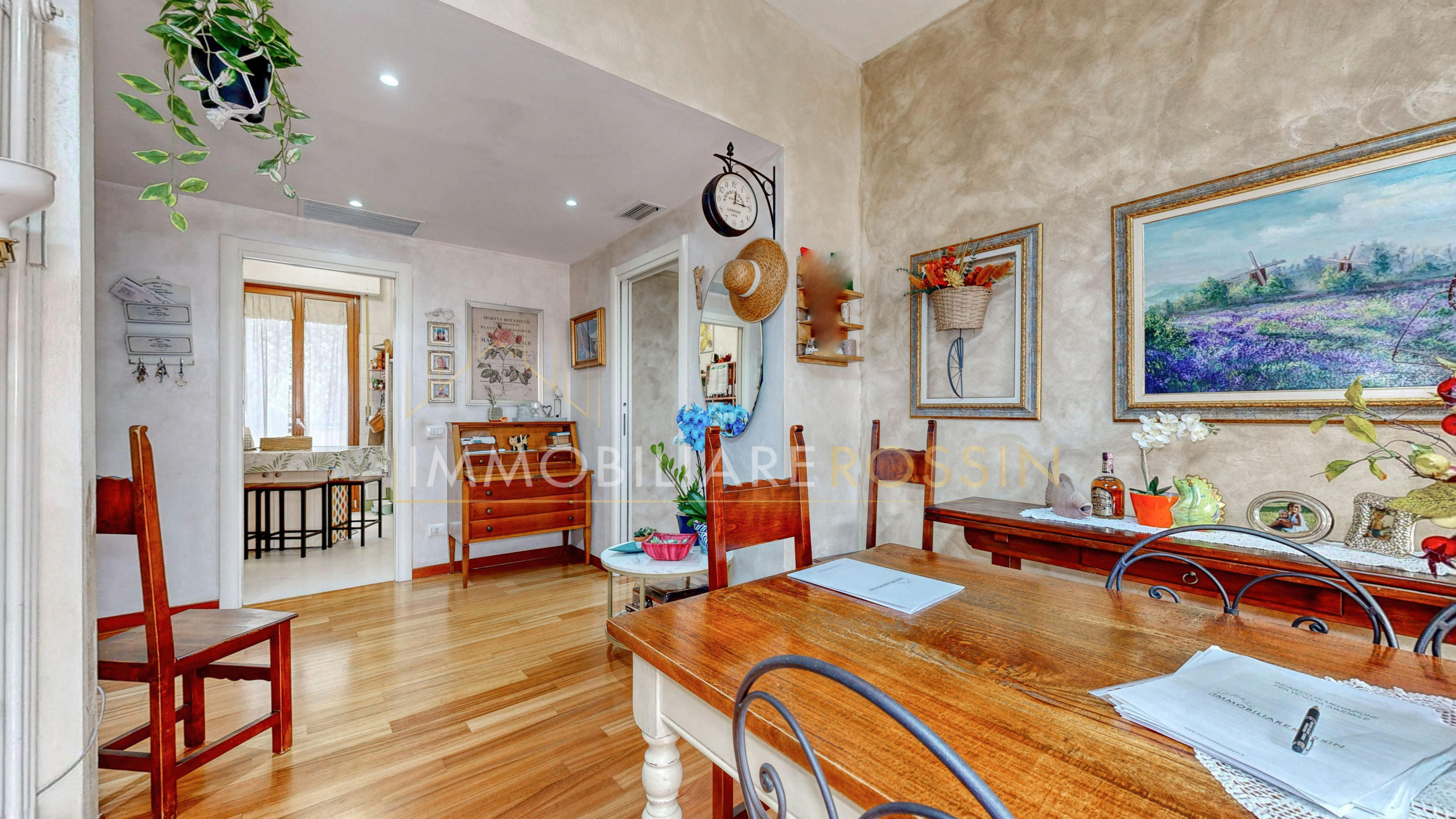L'appartamento ha il parquet in tutti gli ambienti, cucina e bagni in grès porcellanato, infissi in PVC effetto legno con i doppi vetri, aria condizionata con pompa di calore canalizzata bizona e porte a scrigno in tutta la zona notte.