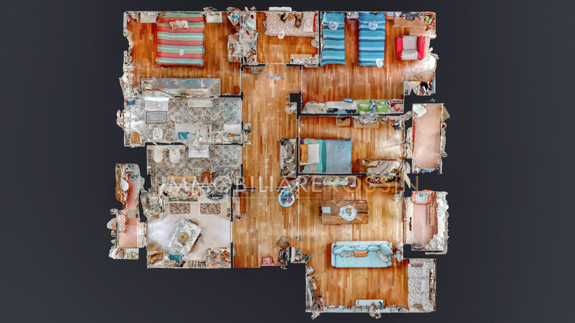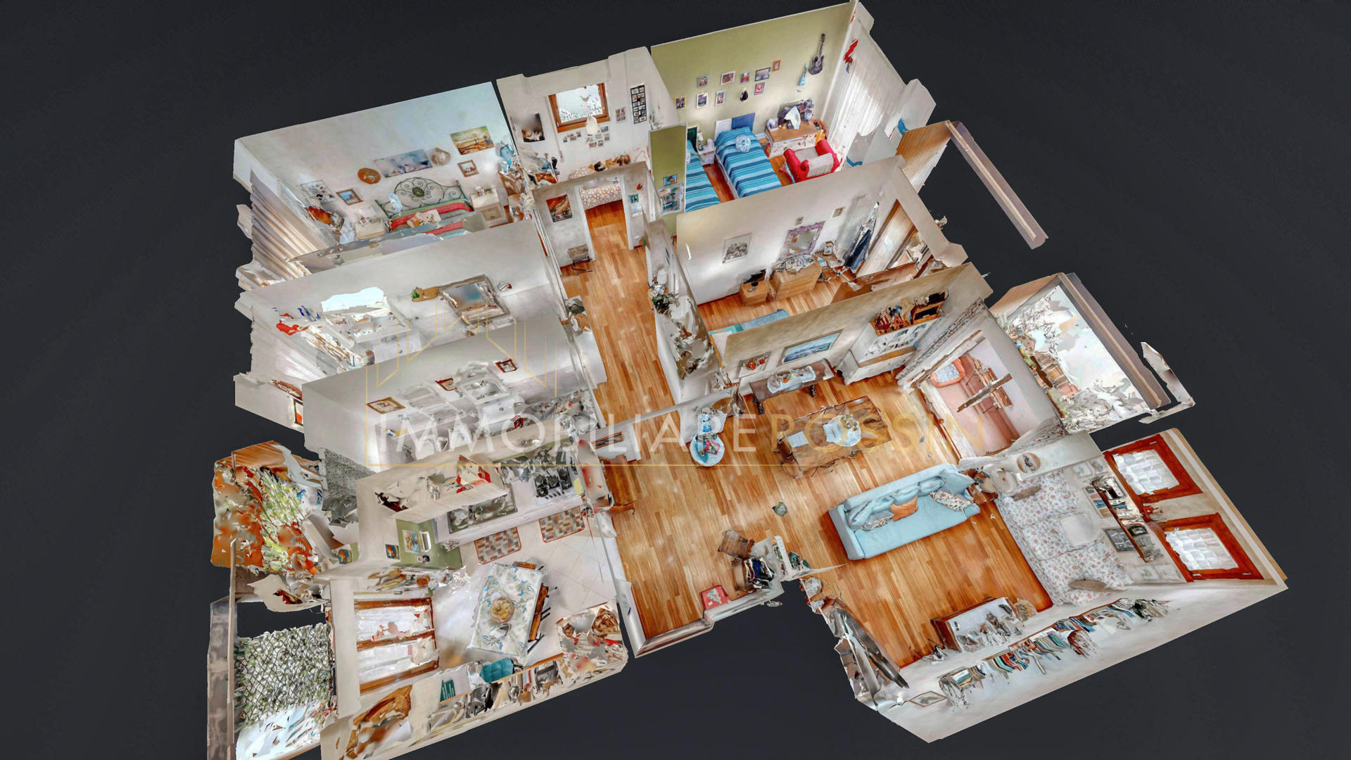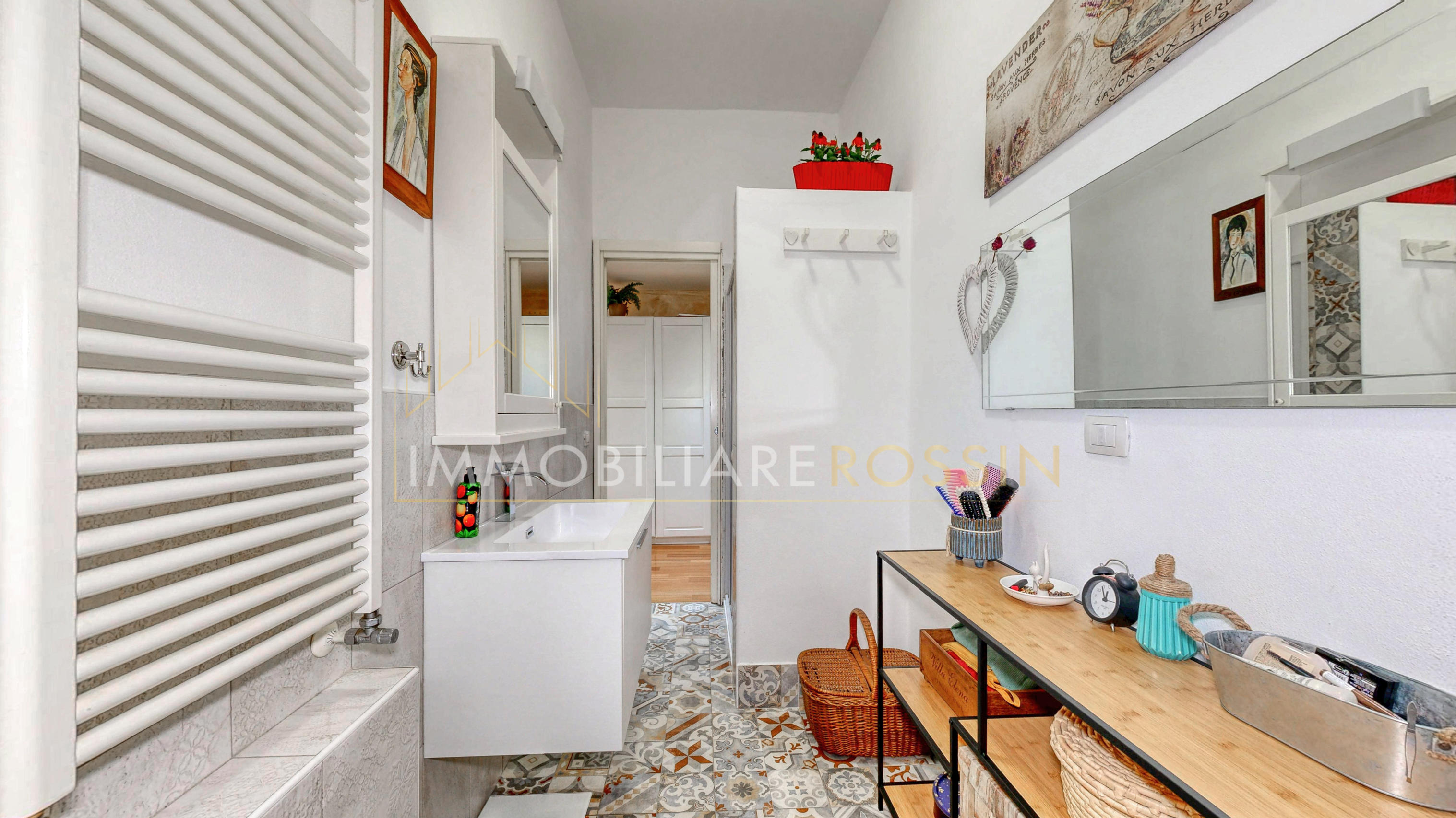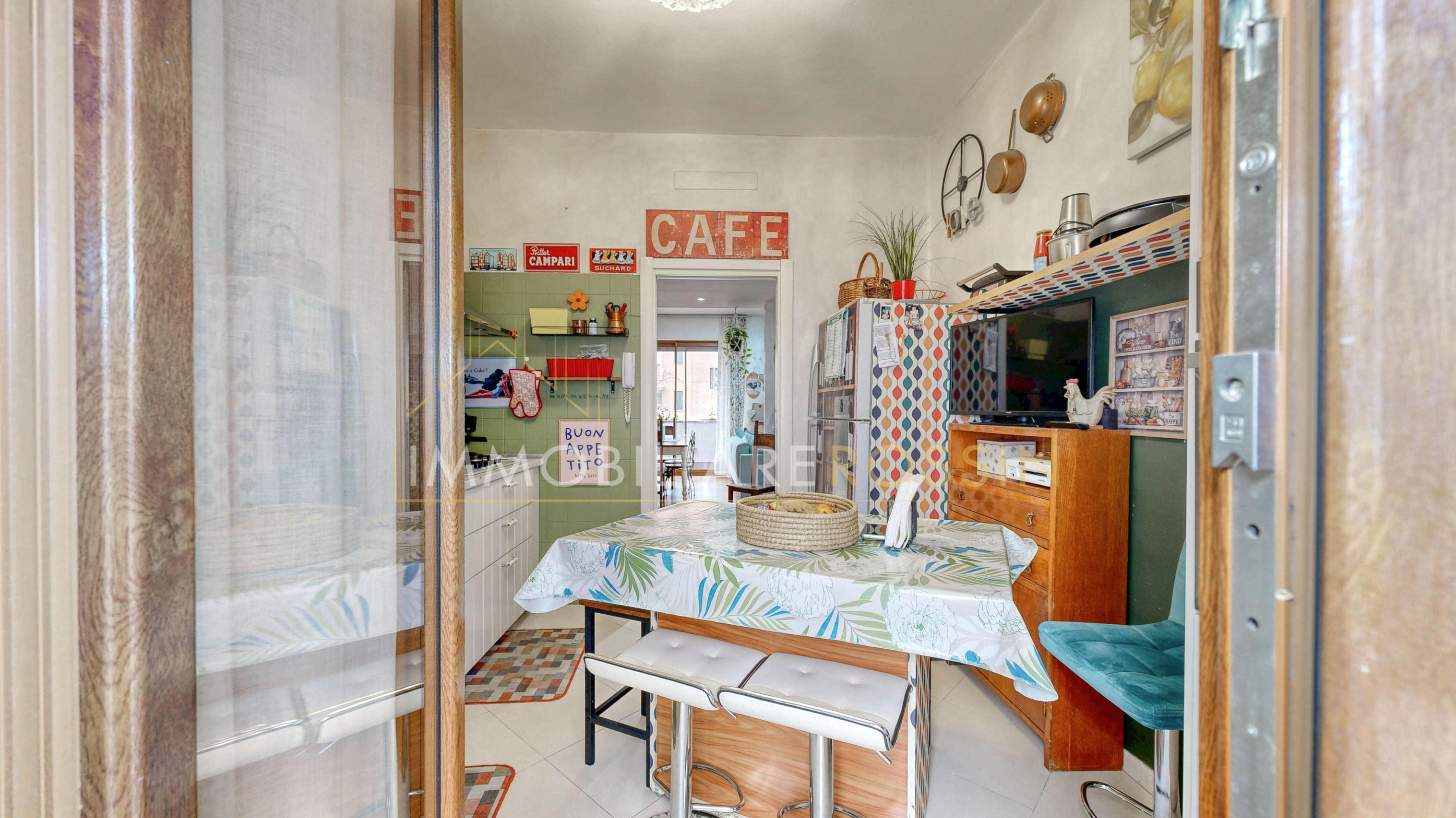 L'appartamento ha il parquet in tutti gli ambienti, cucina e bagni in grès porcellanato, infissi in PVC effetto legno con i doppi vetri, aria condizionata con pompa di calore canalizzata bizona e porte a scrigno in tutta la zona notte.