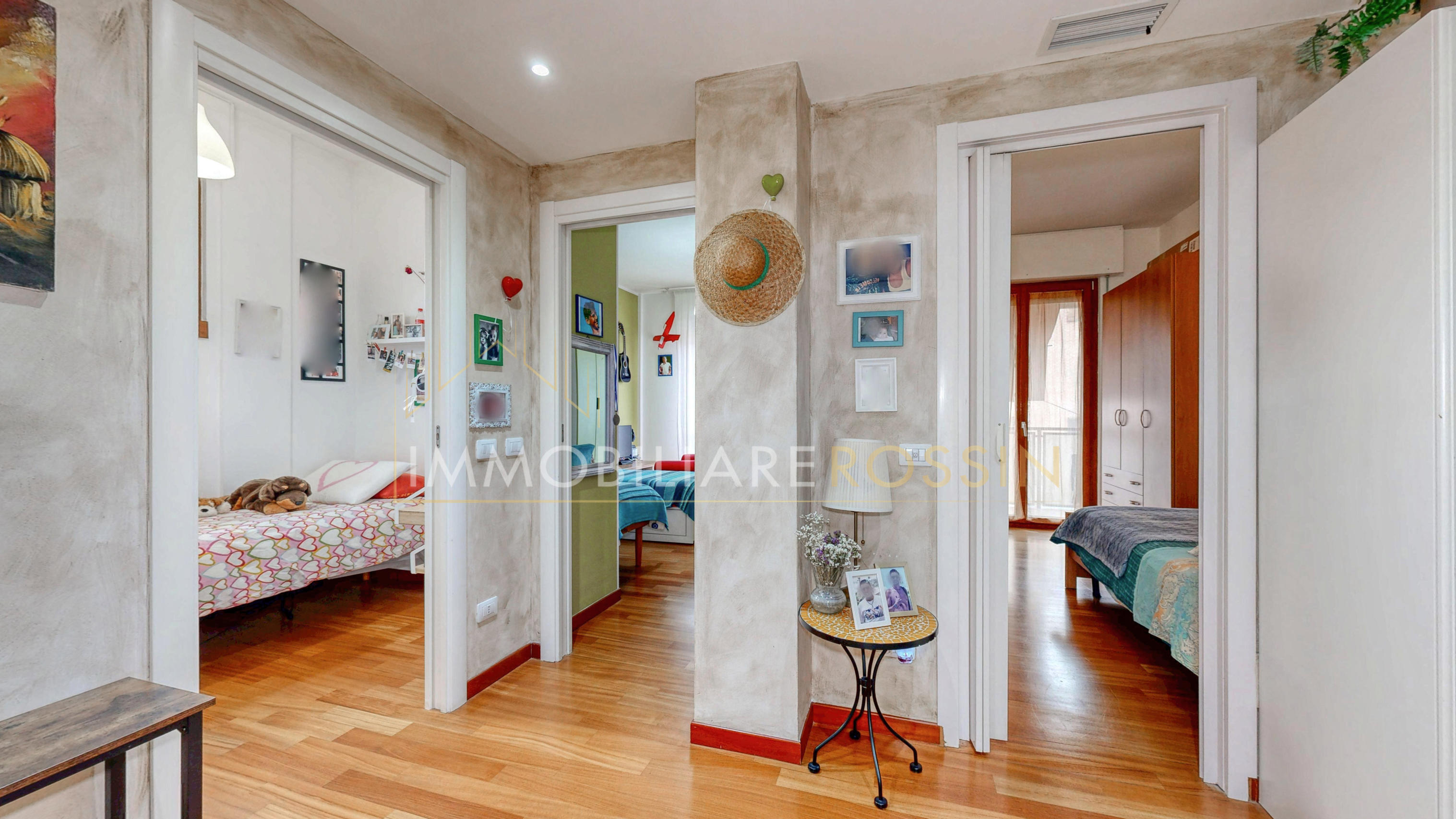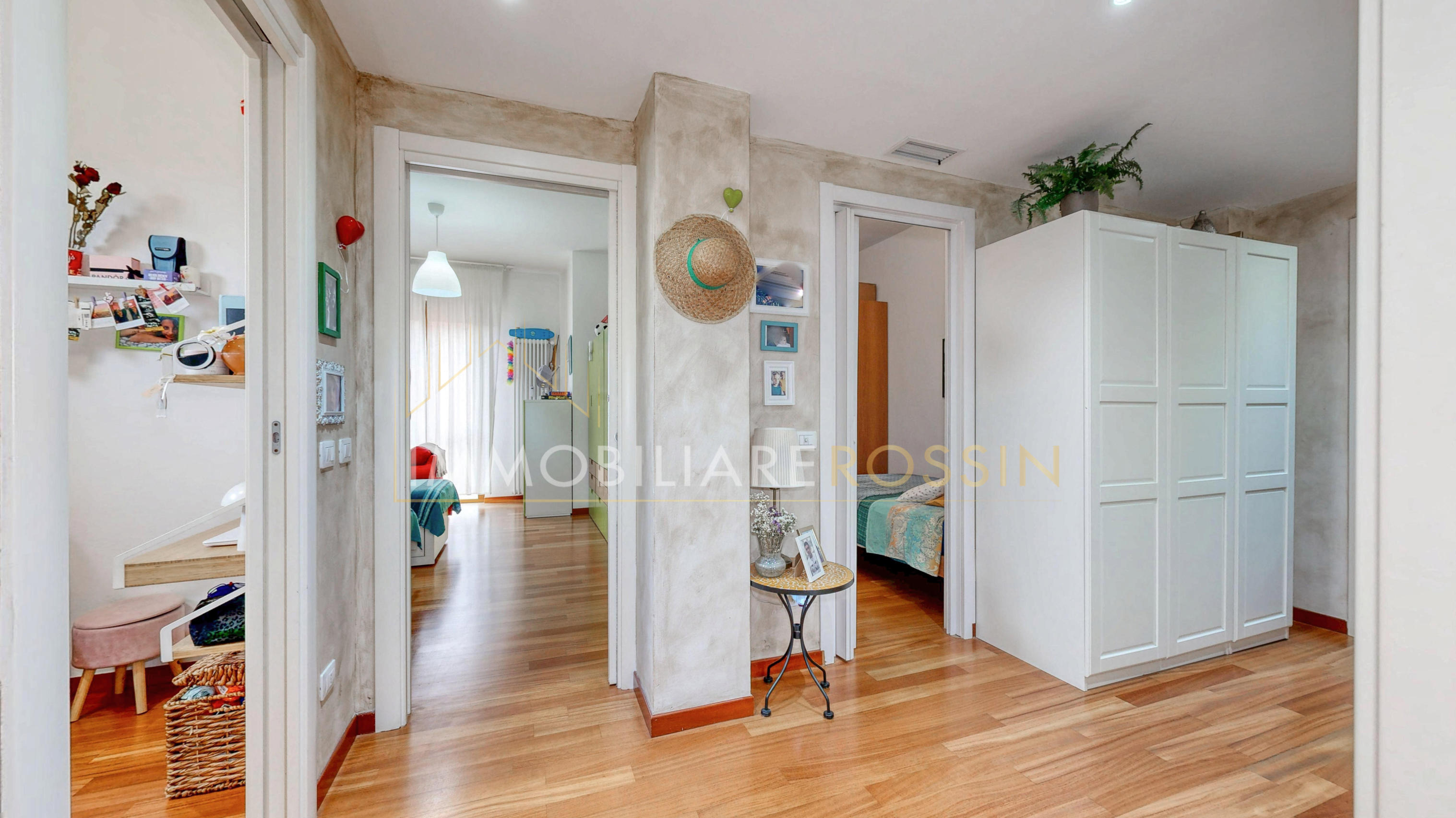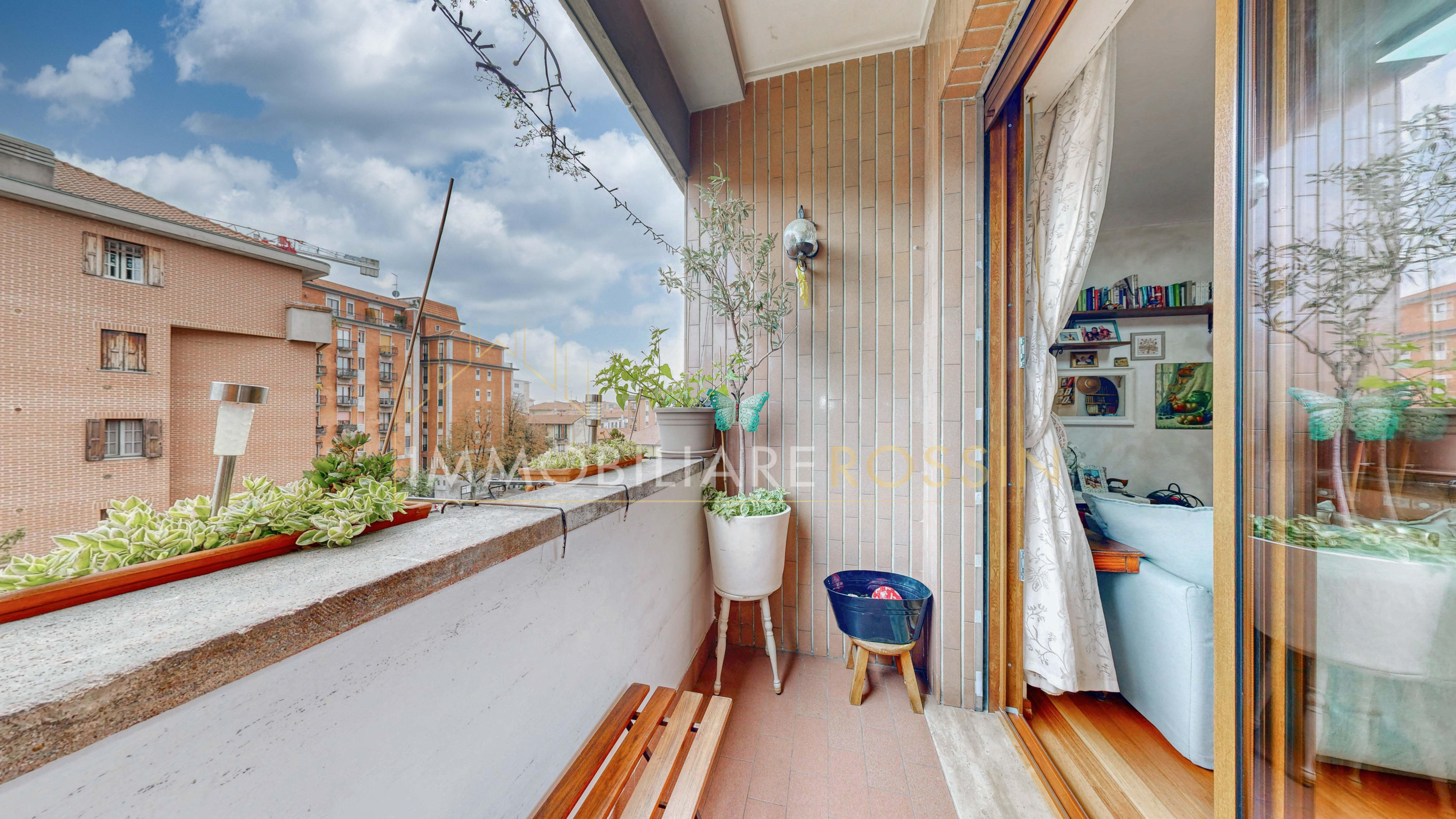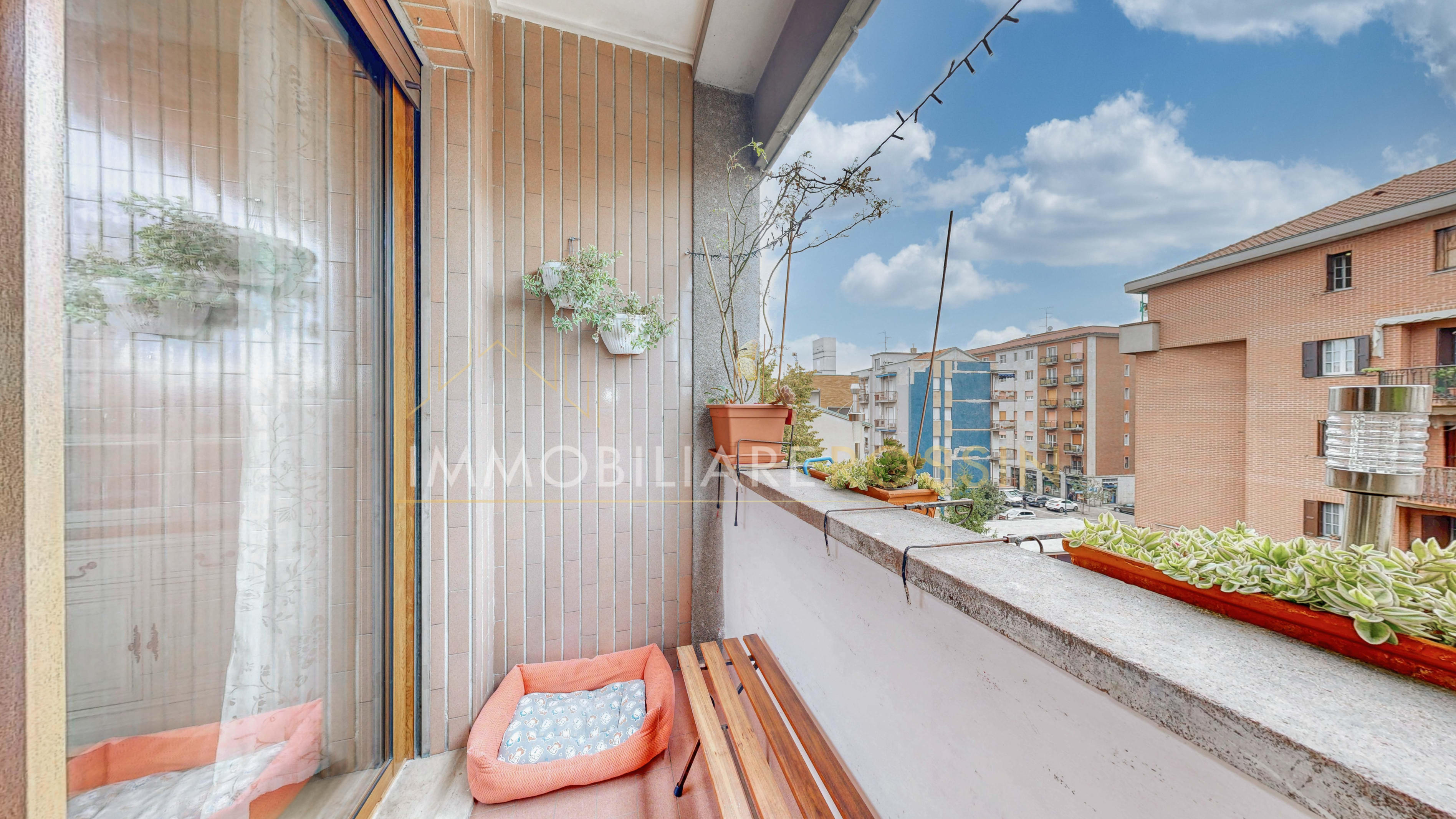 La soluzione è così composta: ingresso nell'ampio soggiorno con balcone esposto a sud-est e cucina abitabile con un secondo balcone di servizio. Disimpegno della zona notte con i doppi servizi finestrati con box doccia, due camere matrimoniali, una seconda camera con balcone ed infine una terza stanza.