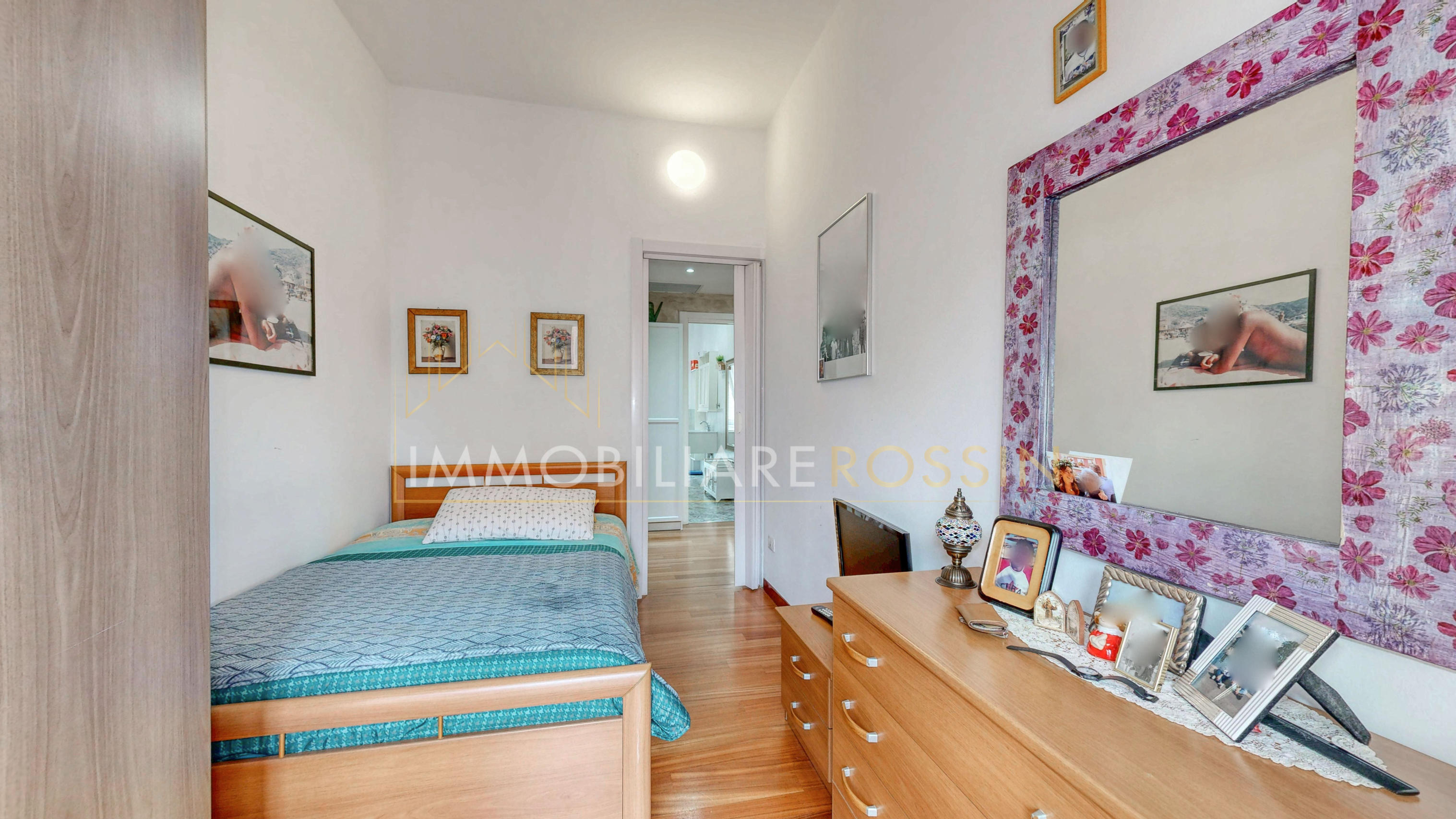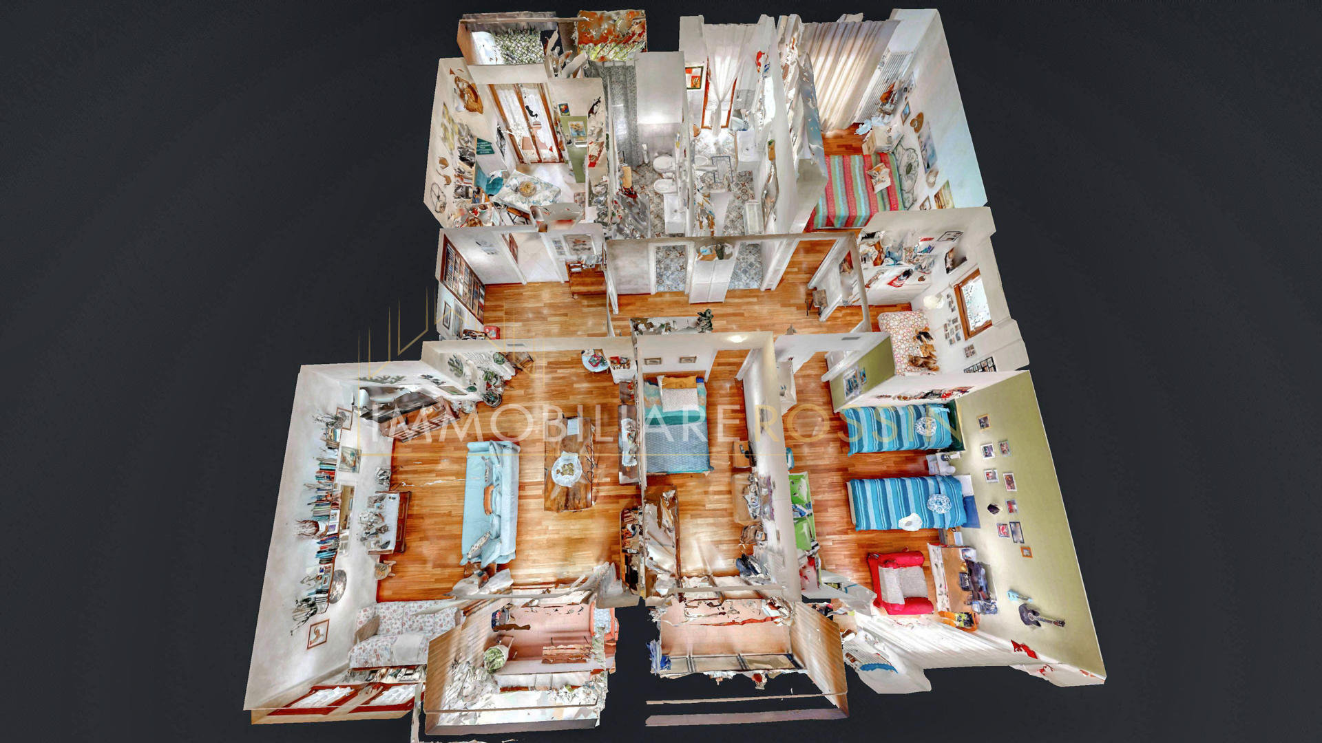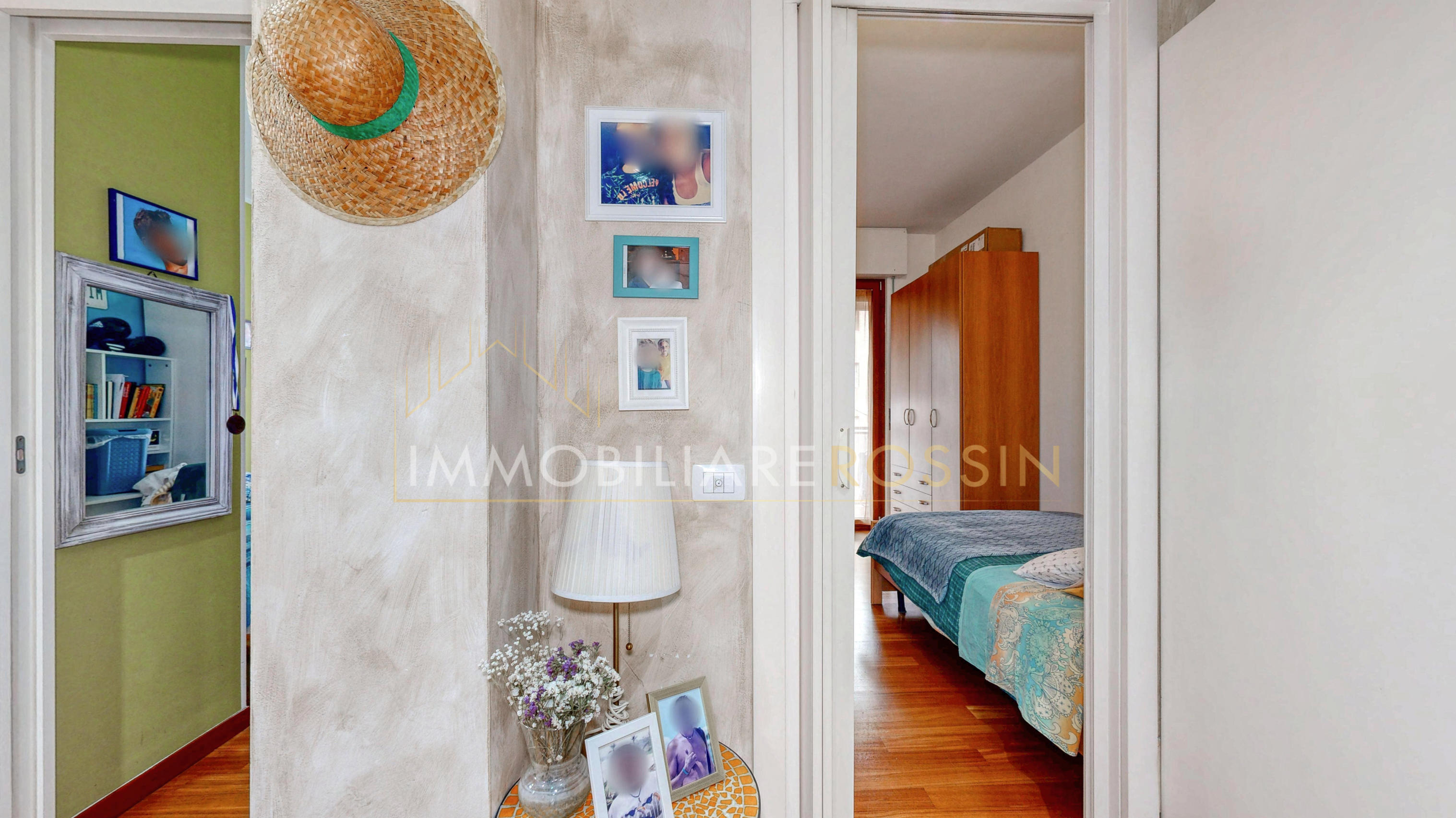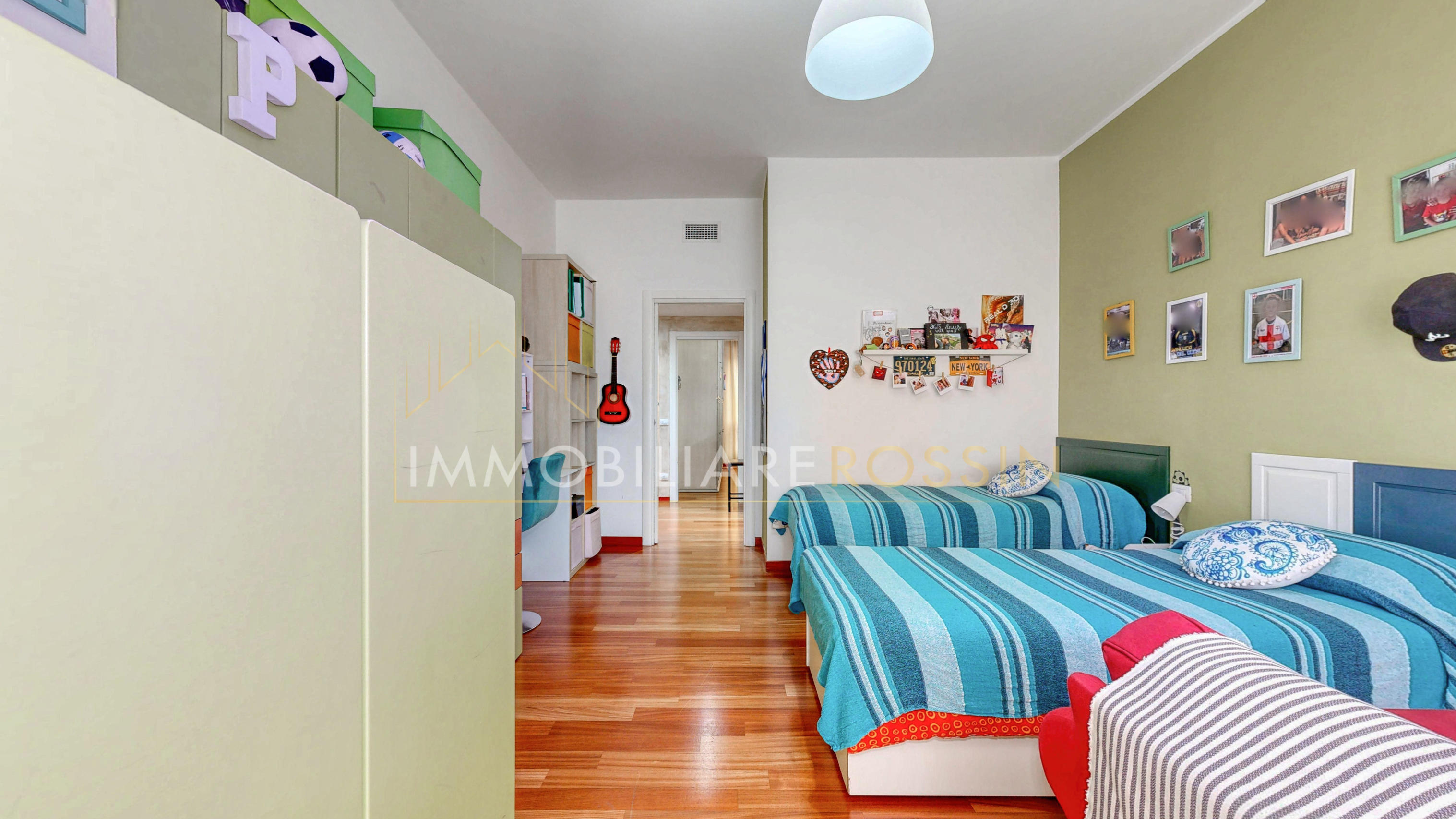 La soluzione è così composta: ingresso nell'ampio soggiorno con balcone esposto a sud-est e cucina abitabile con un secondo balcone di servizio. Disimpegno della zona notte con i doppi servizi finestrati con box doccia, due camere matrimoniali, una seconda camera con balcone ed infine una terza stanza.