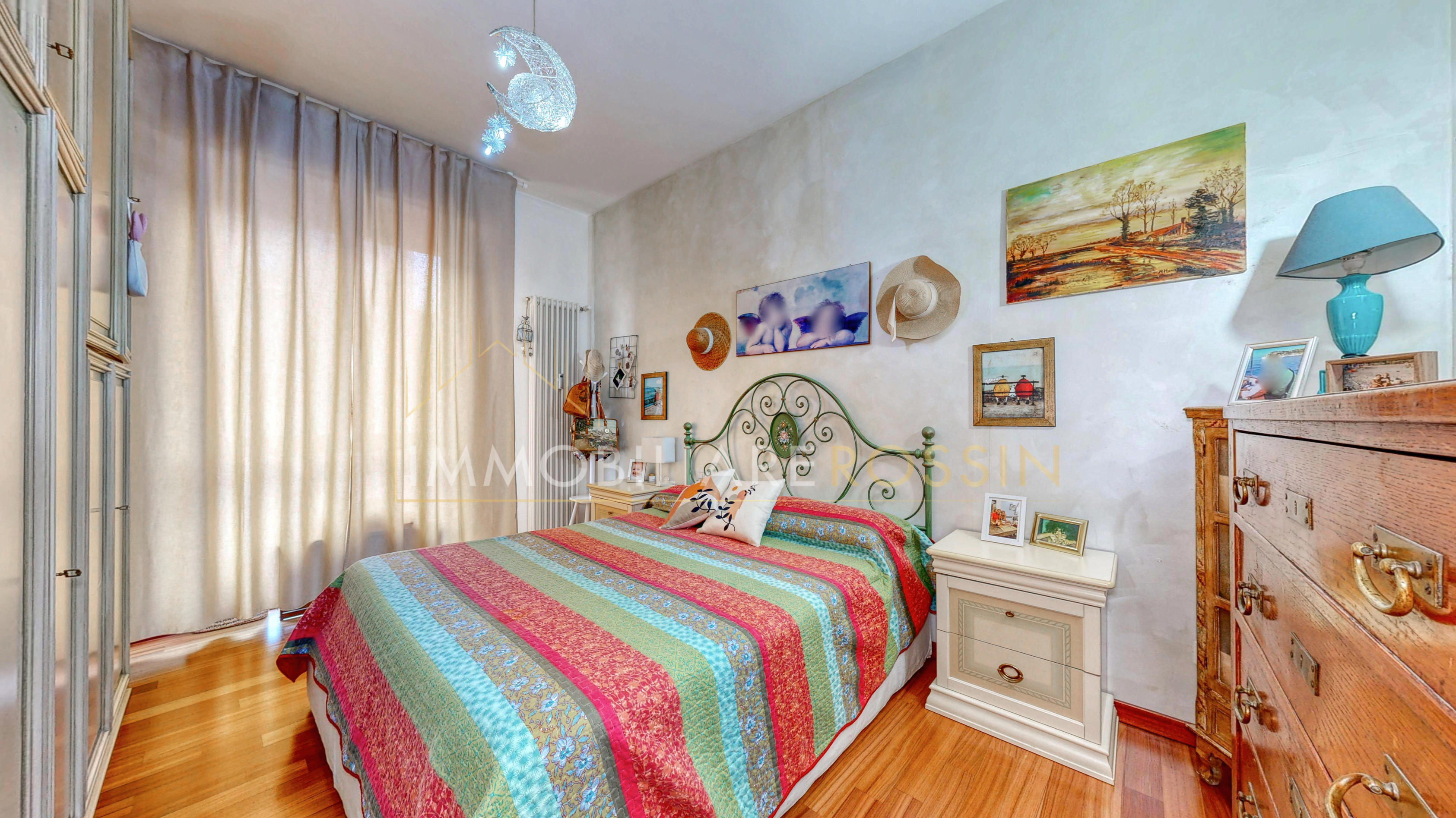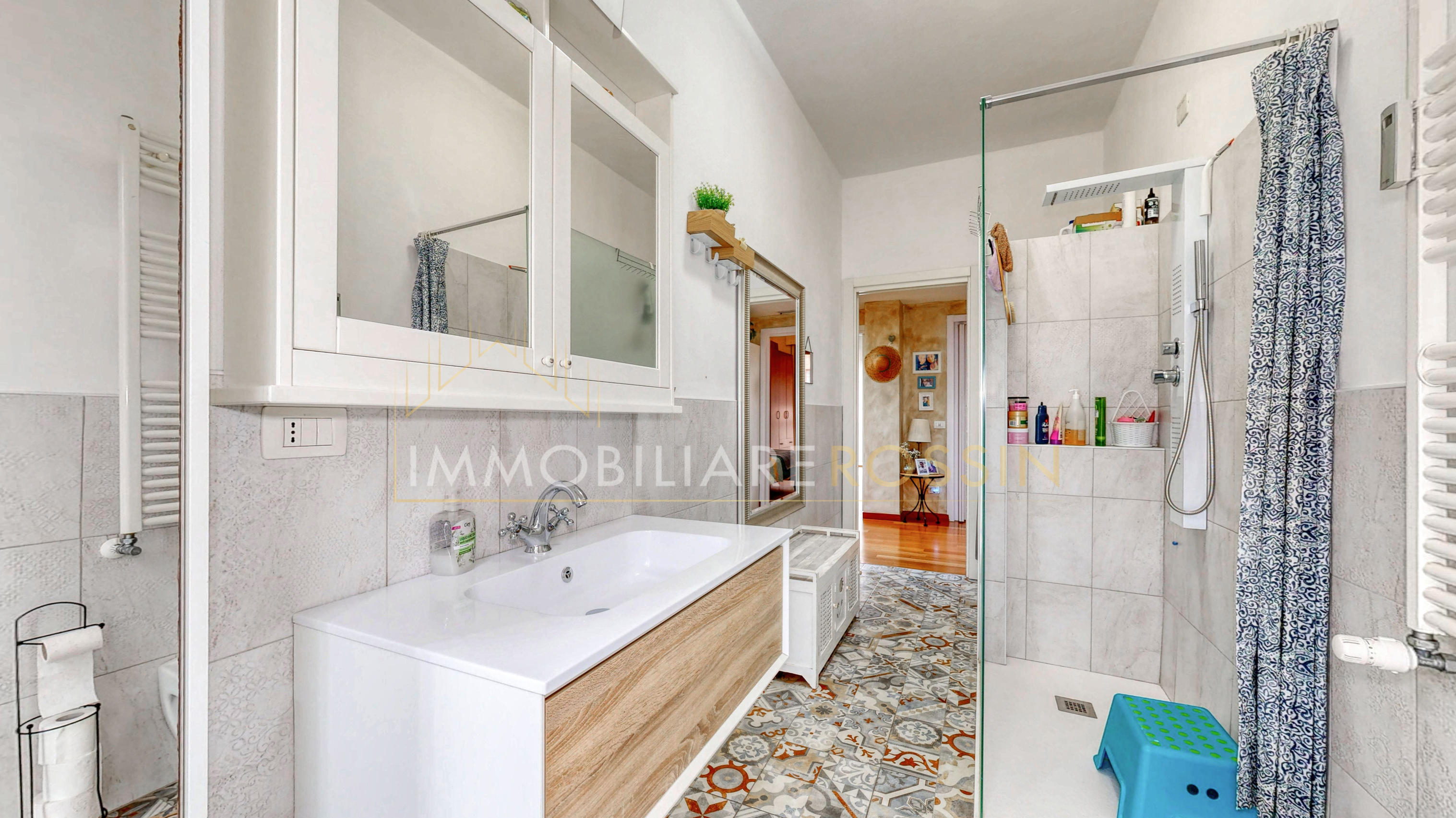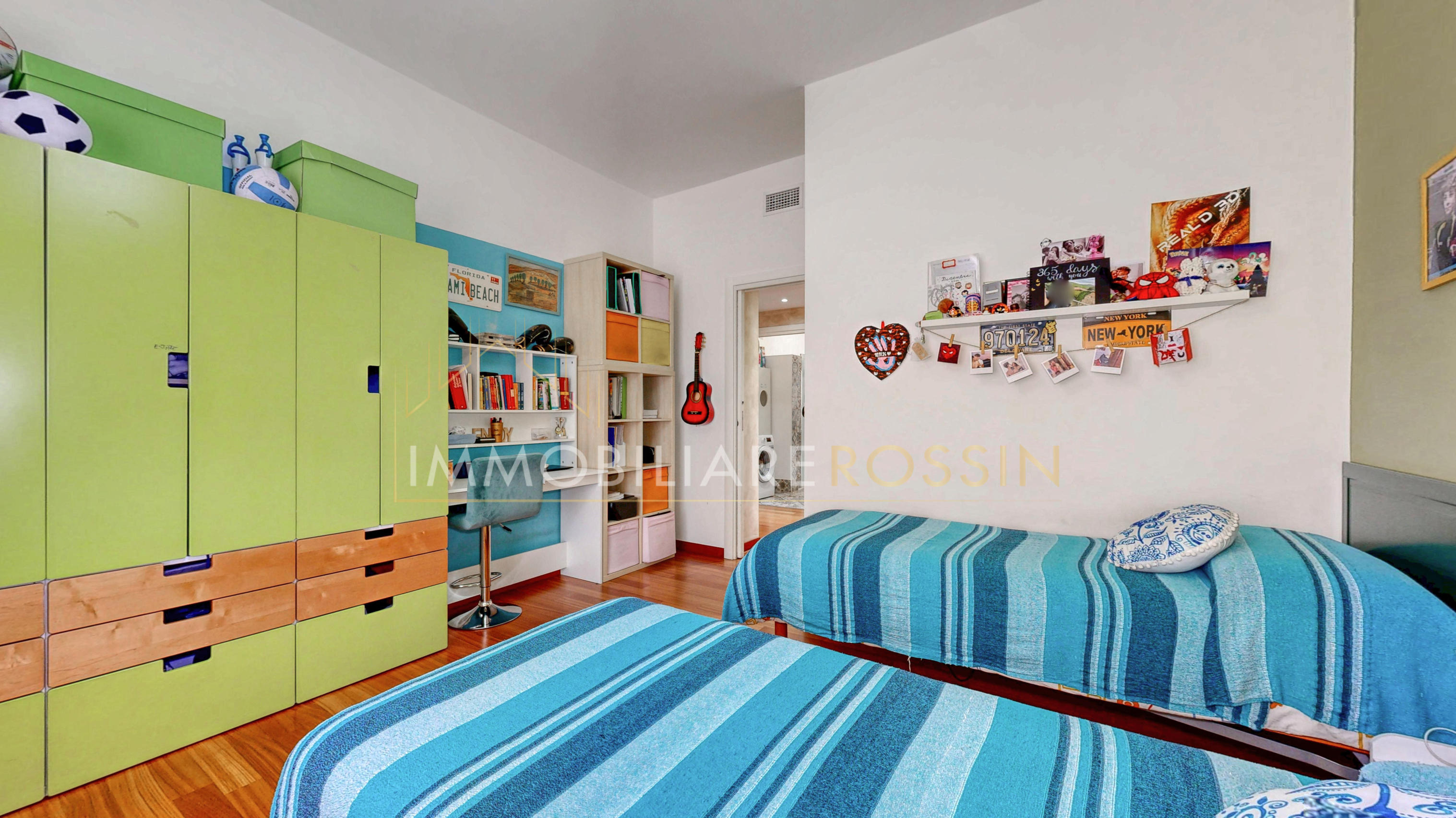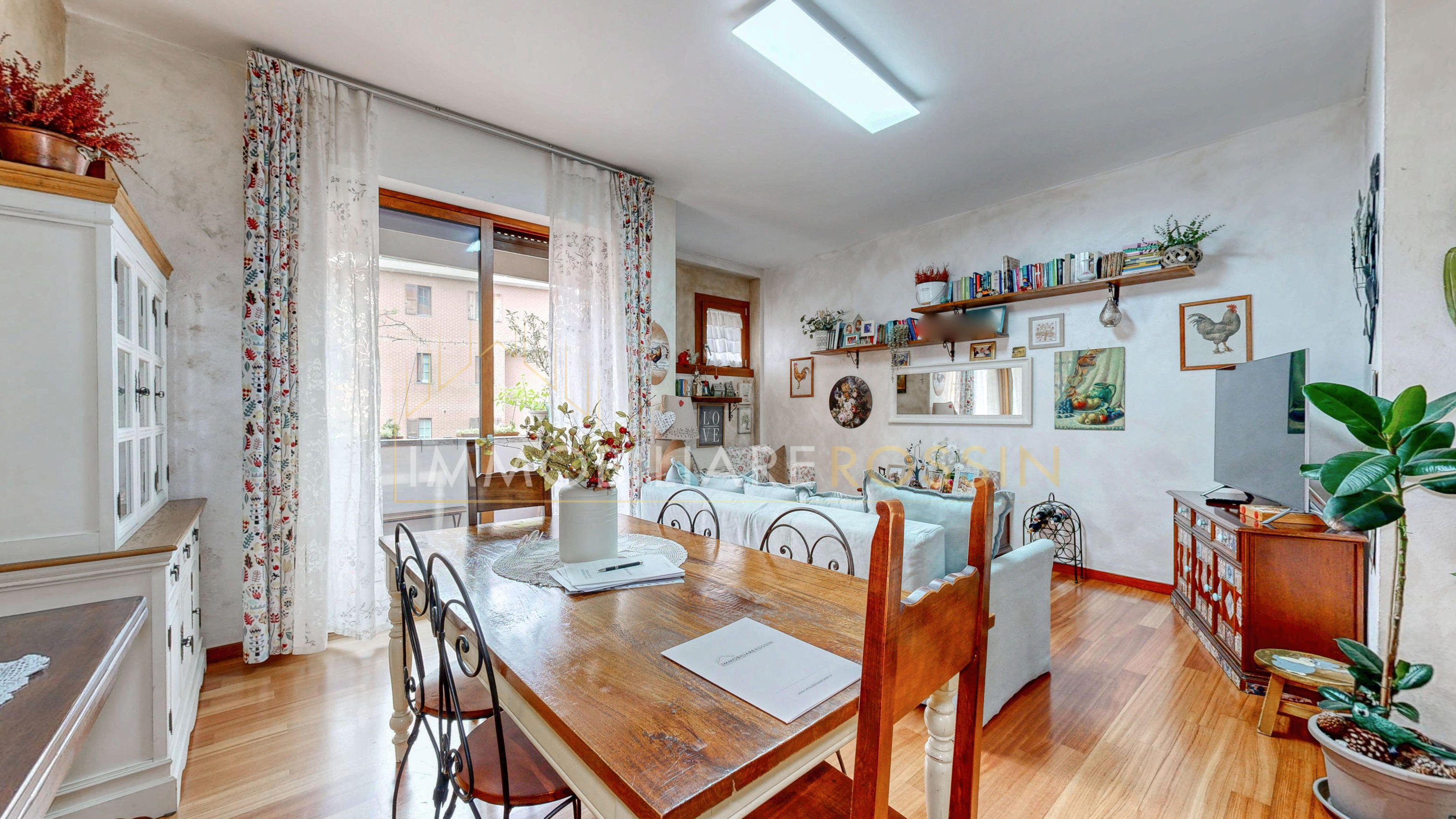 La soluzione è così composta: ingresso nell'ampio soggiorno con balcone esposto a sud-est e cucina abitabile con un secondo balcone di servizio. Disimpegno della zona notte con i doppi servizi finestrati con box doccia, due camere matrimoniali, una seconda camera con balcone ed infine una terza stanza.