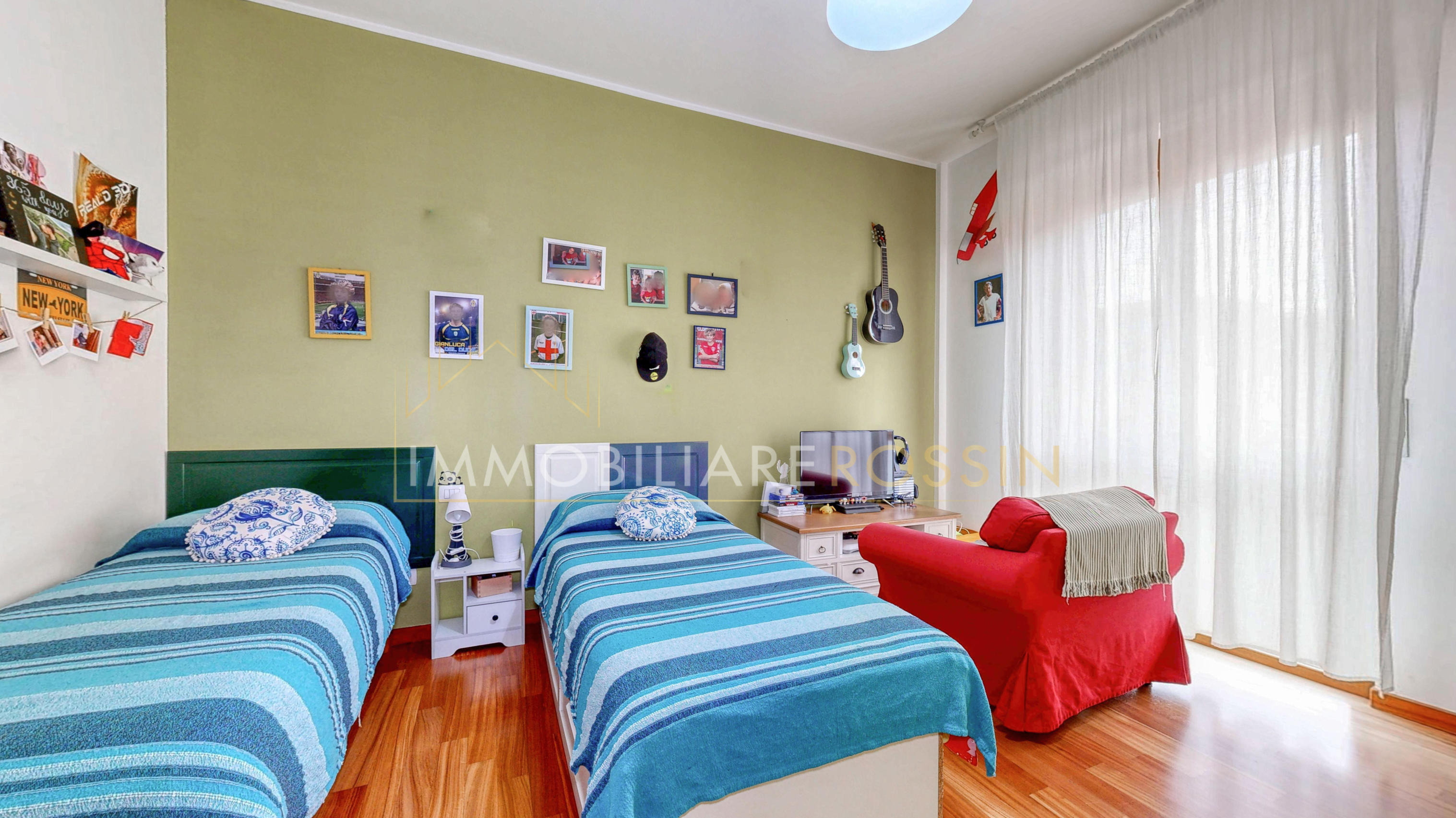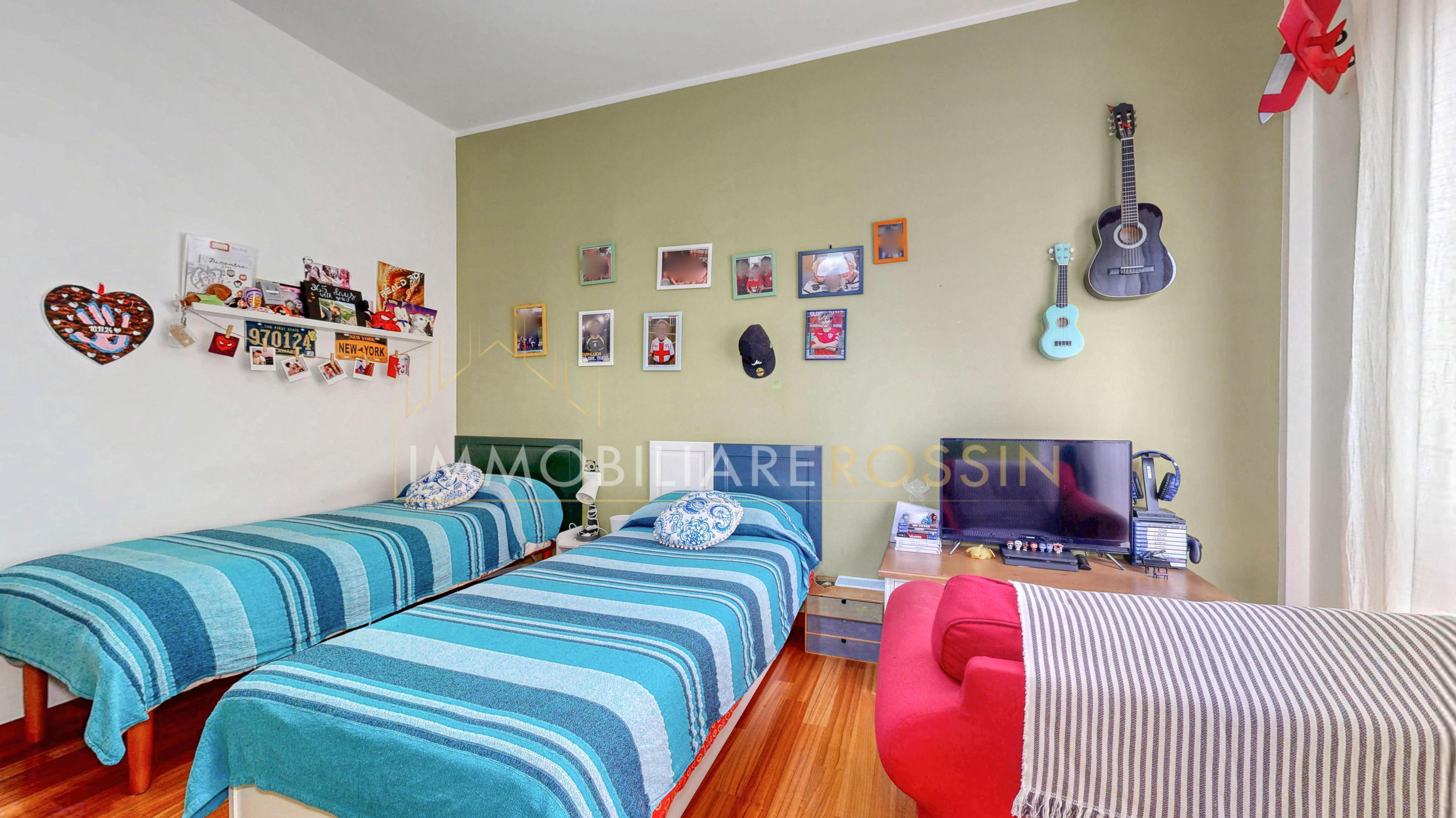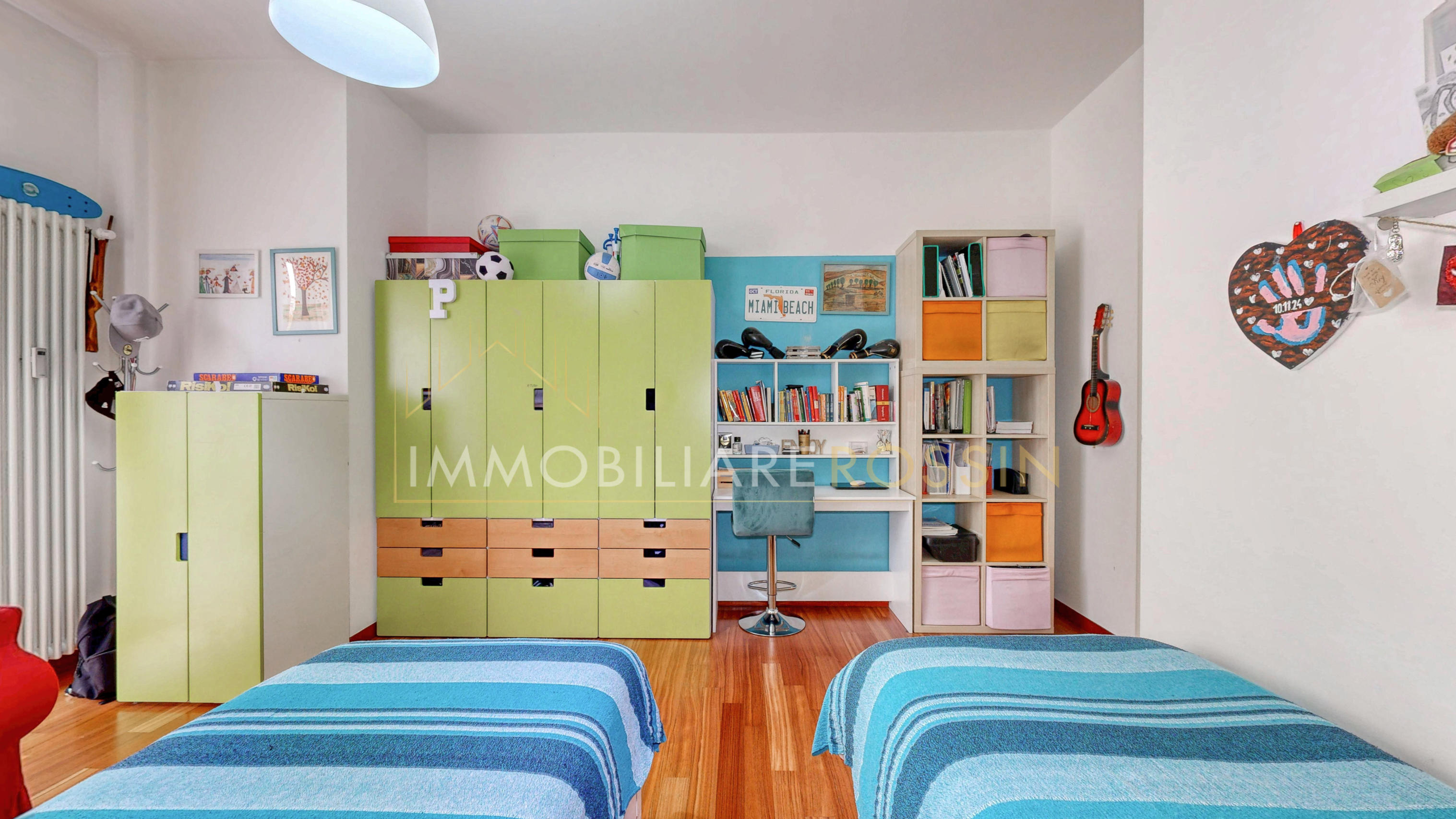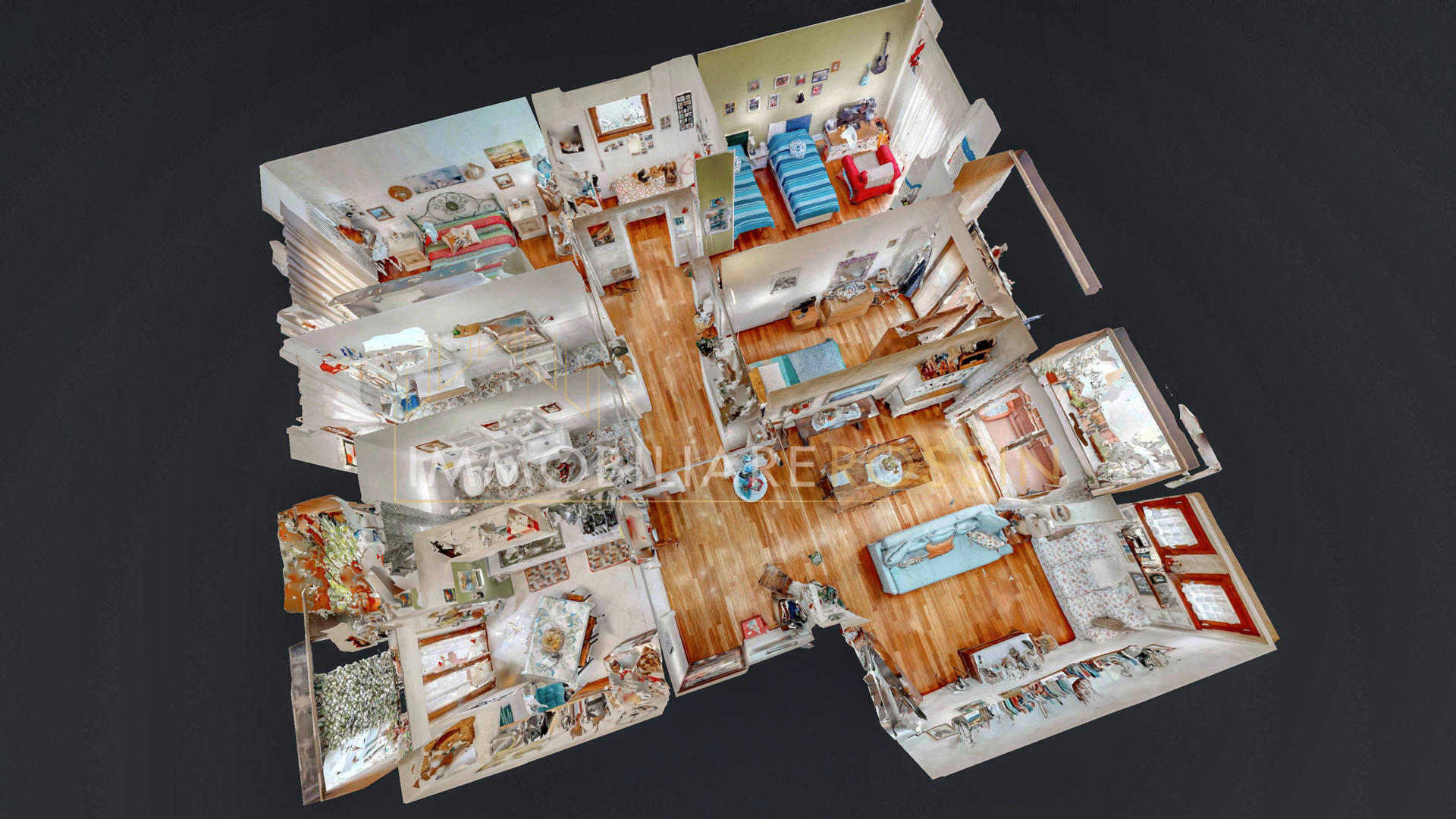 La soluzione è così composta: ingresso nell'ampio soggiorno con balcone esposto a sud-est e cucina abitabile con un secondo balcone di servizio. Disimpegno della zona notte con i doppi servizi finestrati con box doccia, due camere matrimoniali, una seconda camera con balcone ed infine una terza stanza.
